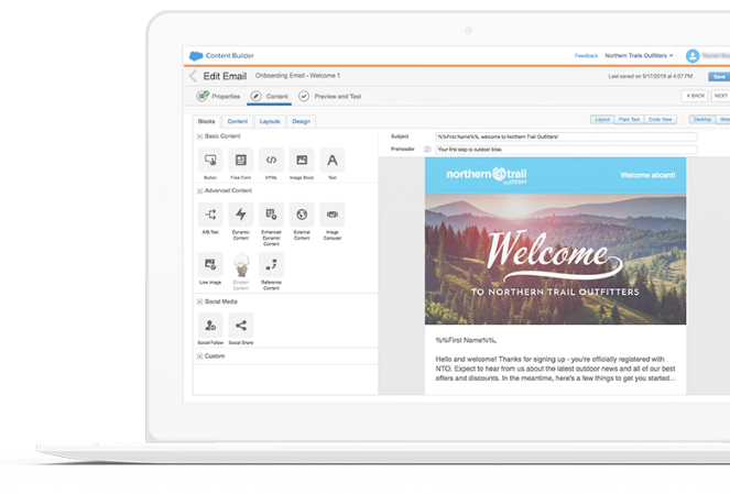 Crea increíbles correos electrónicos altamente personalizados, con herramientas de automatización, calentamiento de tu IP e inteligencia predictiva nativa en cada envío, además llega a todos los dispositivos de tus clientes a través de SMS y push notifications todo esto con Email Studio y Mobile Studio de Salesforce.